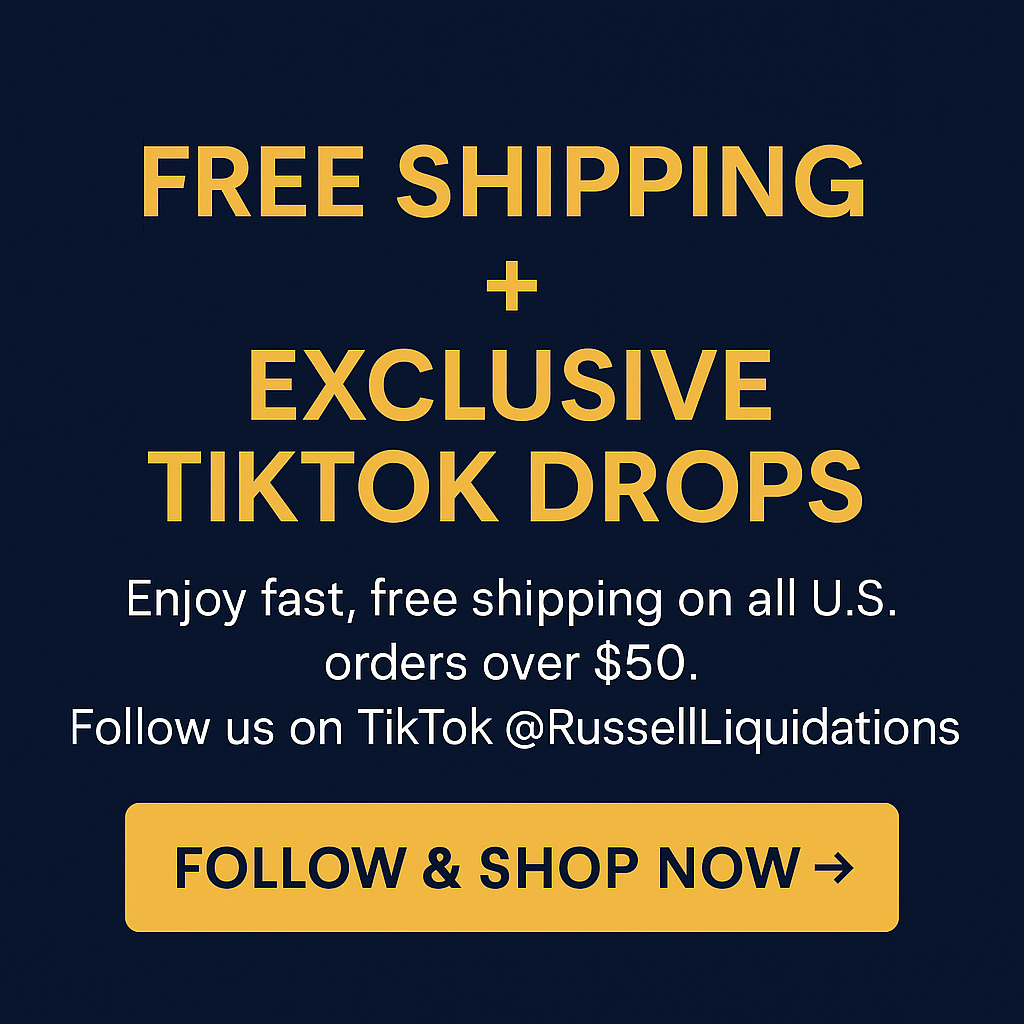 Join our newsletter or follow us on TikTok @RussellLiquidations to get first access to exclusive inventory and flash deals before they sell out.